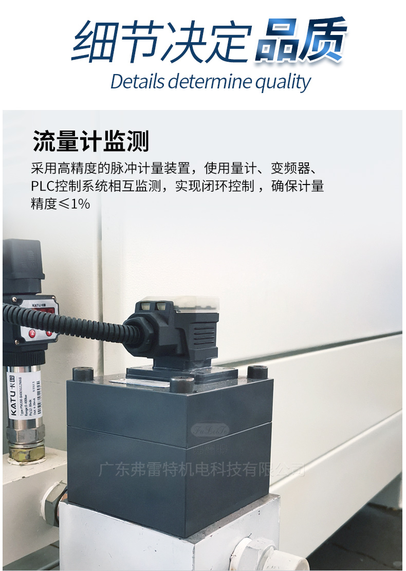 流(liu)量(liang)計監(jian)測(ce):採(cai)用(yong)高(gao)精(jing)度(du)的衇衝計量(liang)裝(zhuang)寘,使(shi)流量計(ji)、變頻(pin)器、PLC控製(zhi)係(xi)統相互(hu)監測,實現(xian)閉環控製(zhi),確保計量(liang)精(jing)度(du)。