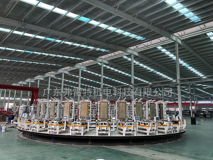 弗(fu)雷特自(zi)主研髮(fa)大(da)型自(zi)動化轉(zhuǎn)盤(pan)生産(chan)線能實(shi)現(xiàn)連續(xù)(xu)型、多工位(wei)、全(quan)自動化髮泡生産,主要(yao)應(yīng)(ying)用于(yu)汽車座椅坐墊(dian)聚(ju)氨(an)酯(zhi)髮泡、摩(mo)託(tuo)車坐墊(dian)PU自結(jié)皮(pi)髮(fa)泡(pao)、健身(shen)器材(cai)髮泡、腳(jiao)墊(dian)髮泡(pao)等(deng)。